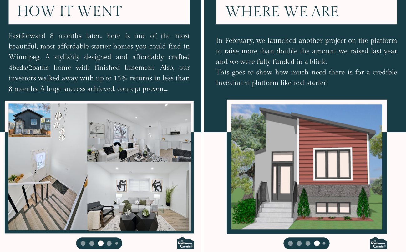 The Realstarter Canada platform was designed with simplicity in mind. A straightforward UI built for efficiency and speed. This is real estate investing simplified. Back projects in few steps, monitor projects from start to finish and have your returns deposited directly into your bank account.